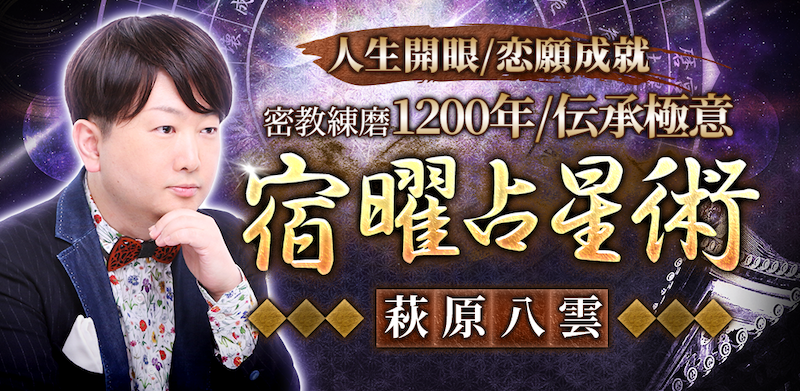 「門外秘伝の極秘術がついにあなたの手に」。天秀会総師範「萩原八雲」が受け継いできた全てを当て尽くす禁術・宿曜占星術。叡智の結集をその目でお確かめください。