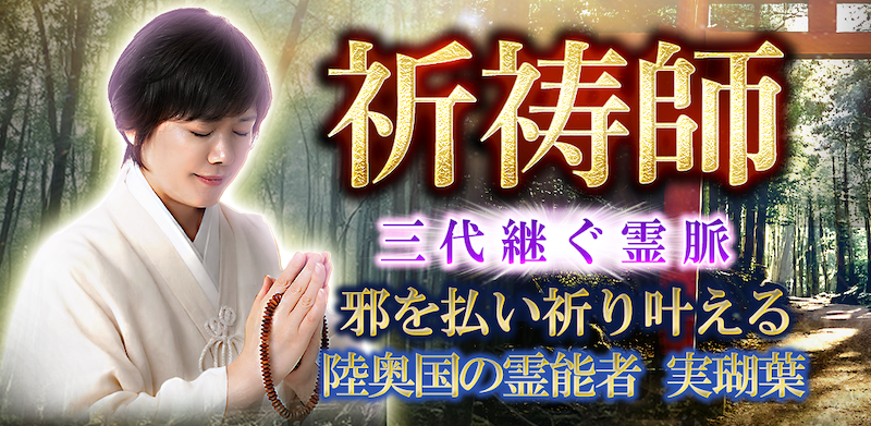「ただの神頼みでは終わらせません」祈りを捧げ神仏と繋がり、心の奥底にある想いや進むべき運命、大好きなあの人との恋の行方まで明らかにしていく。祈りの力で願いを現実に変えていく陸奥の國の霊能者「祈祷師 実瑚葉」。邪気を払い心身を清め、隠された本当の願いや、辿るべき運命、恋の道筋まで……すべてを明らかにし、成就へと導いていきます。